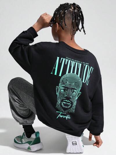 Tween Boy Letter & Figure Graphic Hoodie & Jeans-60%