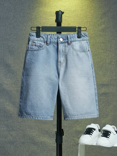 Tween Boy Simple Daily Boho Street Casual Contrast Elastic Waist Bermuda Denim Shorts-57%