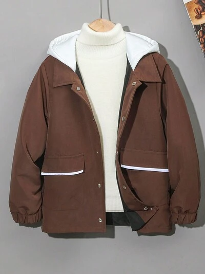 Tween Boy 1pc Flap Pocket Contrast Hooded Thermal Lined Jacket-60%