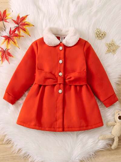 Little Girls' Sweet Bowknot Design Casual Long Sleeve Woolen Shirt For Autumn/winter-65%