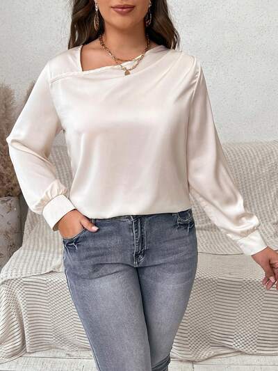 Plus Size Women's Asymmetrical Collar Long Sleeve Shirt-65%