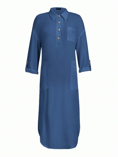 Women's Solid Color Side Slit Asymmetric Curved Hem & Rolled Sleeve Dress-22%
