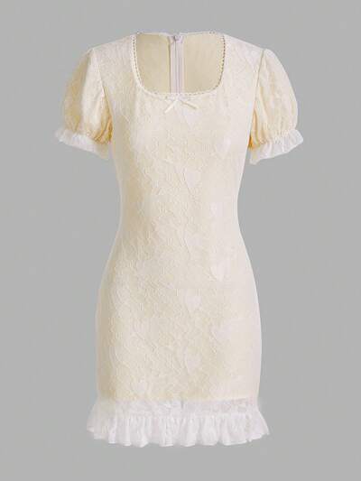 WOVEN WOMEN'S JACQUARD APPLIQUE LAYERED RUFFLE HEM DRESS