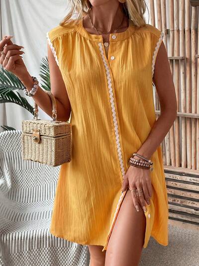 Women's Fashionable Textured Hollow Out Slouchy Feeling Holiday Dress