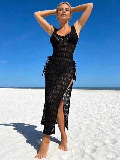 Women's Solid Color Hollow Out Knit Cover Up-42%