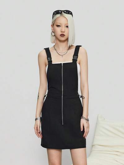 Women's Gorpcore Front Middle Zip Workwear Overall Dress