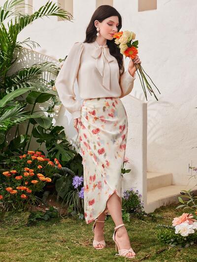 Women's Floral Print Cross Hem Skirt Fall Cloth For Women-65%