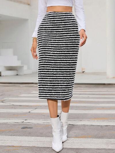Striped Print Straight Skirt-60%