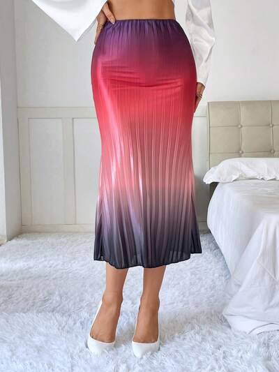 Ombre Pleated Hem Skirt-60%