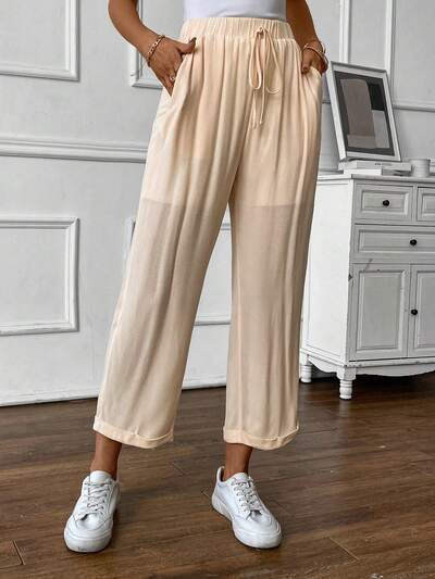 Women's Solid Color Wide Leg Pants With Crossed Tie Hem-60%