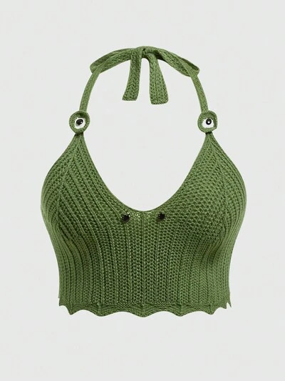 Plus Size Women's Solid Color Halter Knit Top-30%