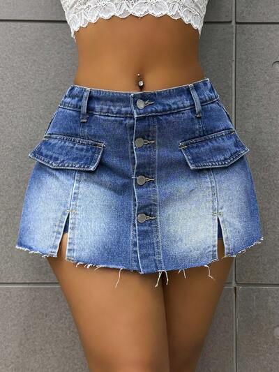 Vacation & Leisure Denim Ruffle Hem Split Skirt-25%
