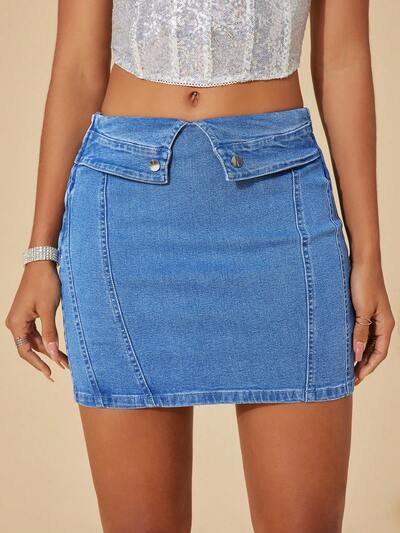Flap Detail Bodycon Denim Skirt-25%