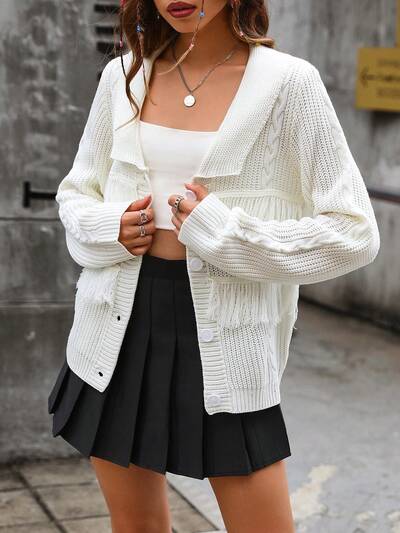 Button Front Cut Out Waist Crop Knit Pullover Fall Winter Sweater-65%