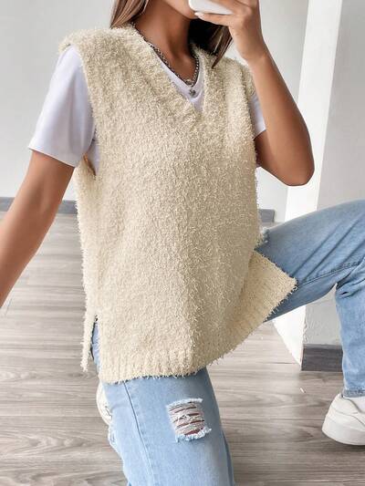 Solid Slit Hem Sweater Vest Without Tee-34%