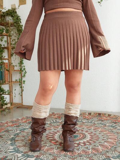 Women's Plus Size Solid Color Pleated Sweater Skirt-37%