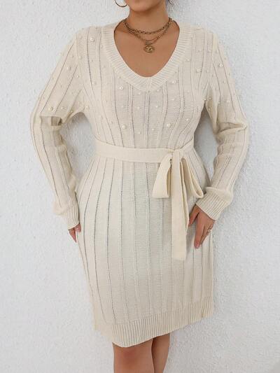 Plus Size Women's Pearl Decorated Sweater Dress-60%