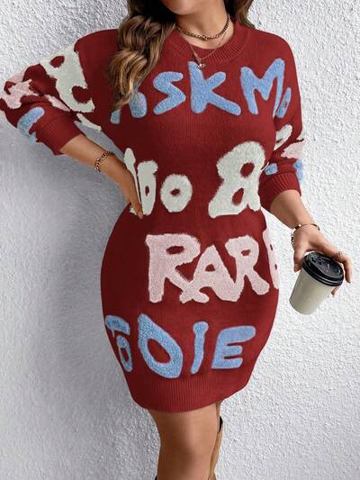 Plus Size Letter Print Drop Shoulder Sweater Dress-60%