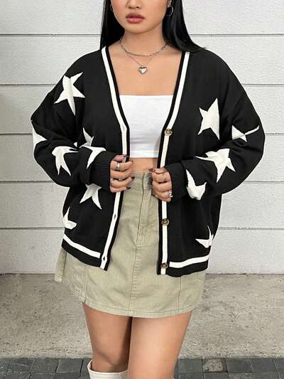 Plus Size Drop-shoulder Cardigan With Star Pattern-60%