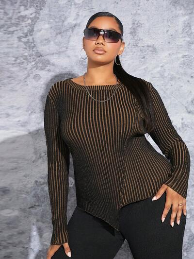 Plus Striped Pattern Asymmetrical Hem Sweater-60%