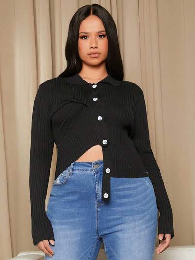 Plus Button Front Asymmetrical Hem Cardigan-60%