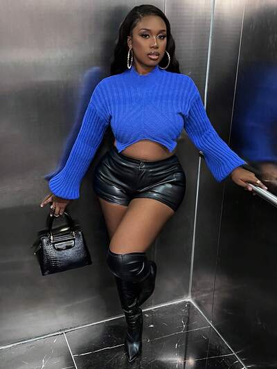Plus Cut Out Fluffy Knit Crop Sweater-60%