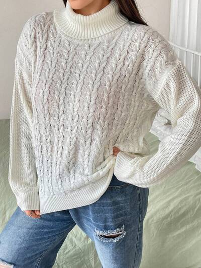 Plus Turtleneck Drop Shoulder Cable Knit Sweater Knit Pullover Fall Winter Sweater-60%