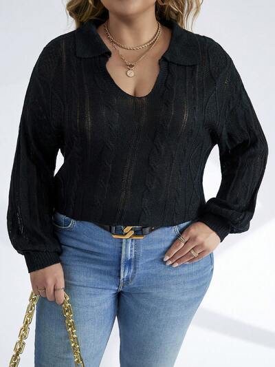 Plus Cable Knit Drop Shoulder Sweater Knit Pullover Fall Winter Sweater-60%