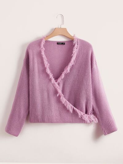 Plus Drop Shoulder Fringe Wrap Sweater-60%