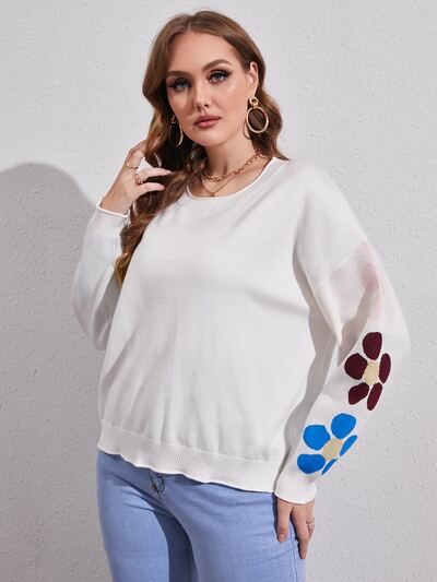 Plus Floral Pattern Drop Shoulder Sweater-60%