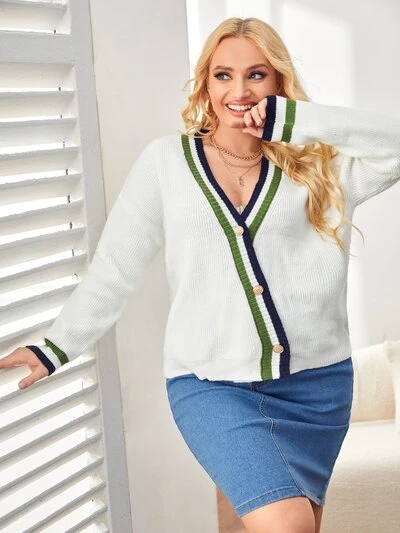 Plus V-neck Striped Cardigan-60%