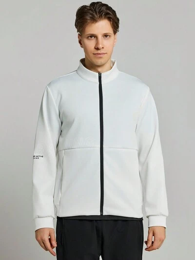 Boyfriend Style Men's Letter Printed Zippered Front Sport Jacket Workout Tops Sports Jacket-60%