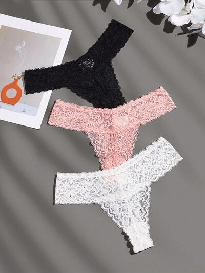3pcs Women's Lace Solid Color Daily Thongs Set-60%
