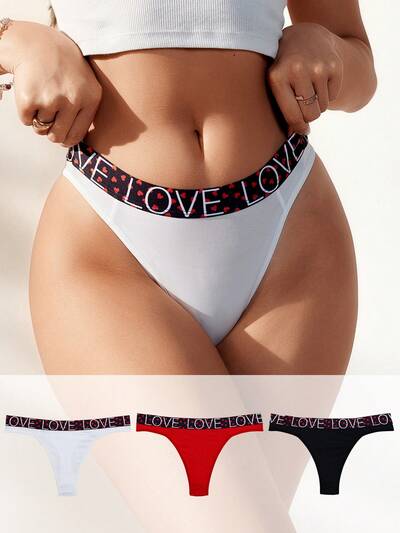 Yoga Fashionable Heart & Letter Print Strap Thong Sports ,3 Pcs-65%