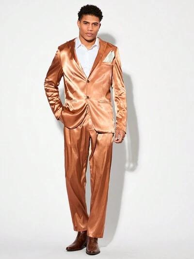 Men Party Style Peak Collar Casual Suit Jacket And Pants Set