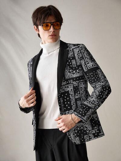 Men's Summer Geometric Printed Woven Casual Shirt With Patchwork Design-65%