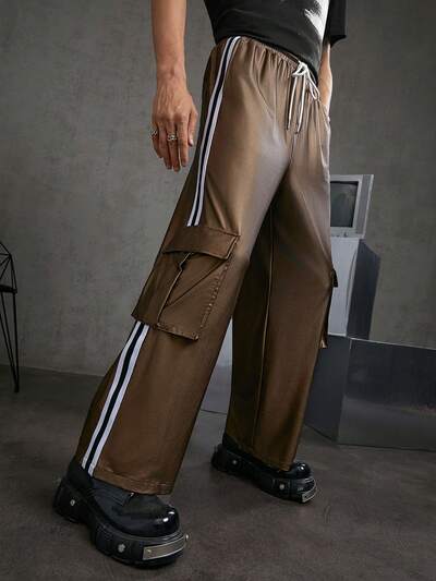 Fashion Striped Knit Casual Sweatpants With Side Pocket & Flap-20%