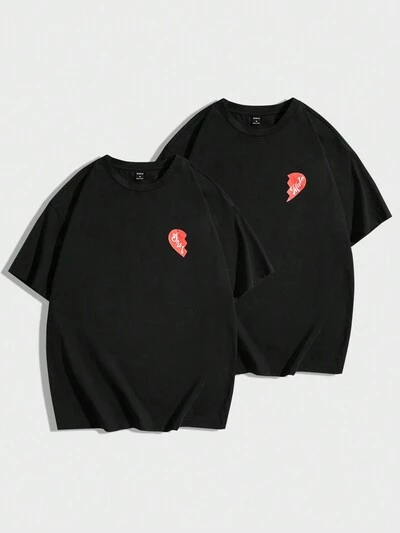 2pcs/Pack Men's Graphic Print Casual Crew Neck Short Sleeve Knit Tees-26%