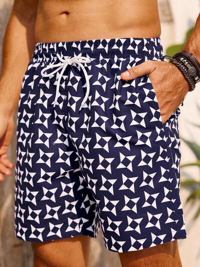 Men'S Geometric Pattern Drawstring Waist Beach Shorts-23%