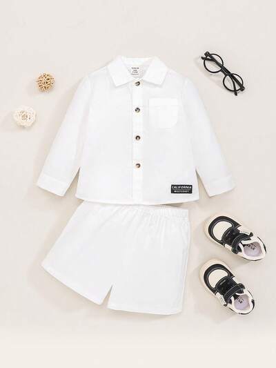 Baby Boy's Two-piece Set Of Contrasting Patch Pockets, Casual Shirts And Shorts
