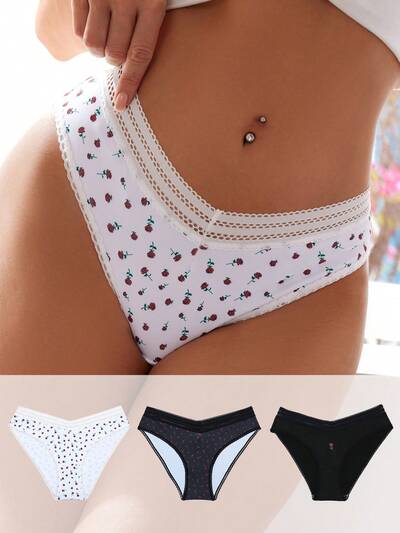 Women Fashionable Sweet & Sexy Lace Patchwork Triangle Panties ,3 Pcs-60%