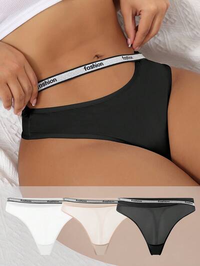 Women's 3pcs Comfortable And Elegant Solid Color Hollowed-Out Triangle Panties Set-60%