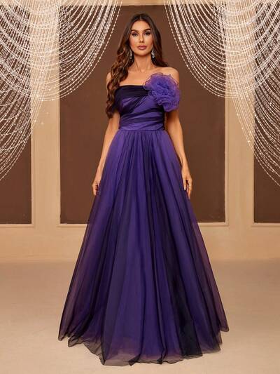 Women's Patchwork 3d Mesh Fabric A-Line Strapless Evening Dress
