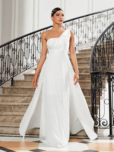 One Shoulder Sleeveless Glitter Evening Dress For Women-65%