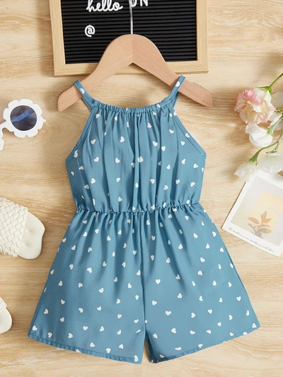Baby Girl Heart Print Cami Romper For Valentine's Day,Kids-60%