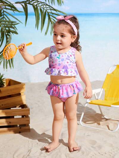 Baby Girl 3pcs Floral Pattern Short Sleeve Top Set With Round Collar