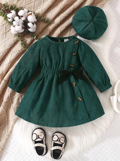 Baby Girl V-Neck Floral Fabric With Side Mesh Elegant And Noble Dress