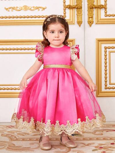 Baby Girl Elegant Flower Patchwork Short Sleeve Dress-52%