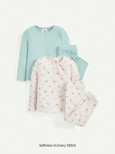 Baby Girl Casual Style Round Neck Top And Long Pants Snug Fit Pajama Set 4pcs Matching Set-43%