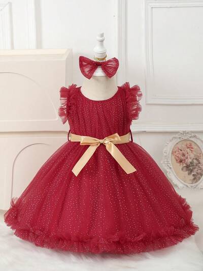 Baby Girl Spring/Summer Elegant Festive Cute Everyday Casual Dress In Gorgeous Mesh Material With Pink Bow-42%